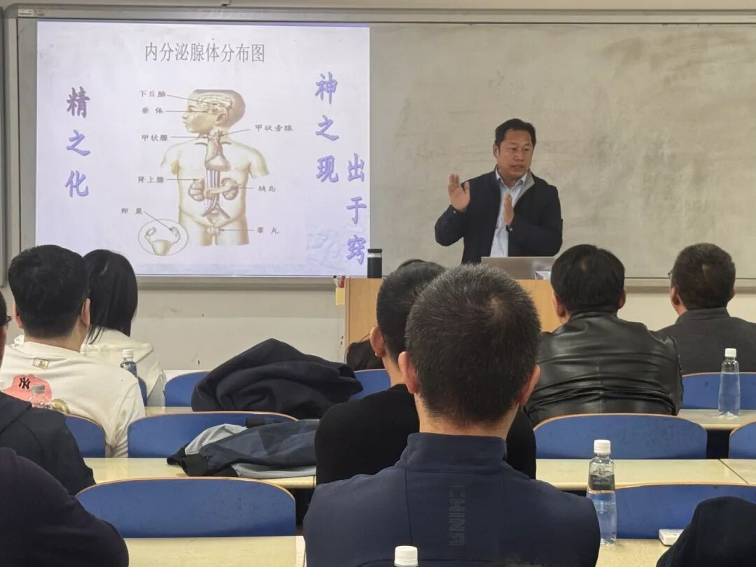 “渭城朝雨浥轻尘,客舍青青柳色新”,徐灿坤以《送元二使安西》的诗句寄寓欢迎之情。作为特殊的“一课”,他结合自身研究领域,与校友们共同探讨司机社糖尿病防治与养生知识,让这场重逢更添专业共鸣。