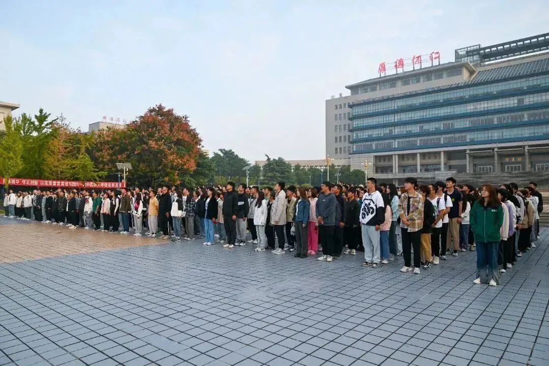 在中兴广场举行2023年升旗仪式。学团干部代表及2023级新生参加此次仪式。