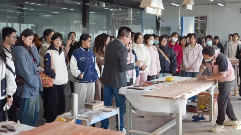 师生来到山东炎黄健康产业集团,参观了集团旗下的山东炎黄元樾医药科技有限公司和济南班生东方木业有限公司,了解到企业在生物医药产业和红木家具制造业方面的发展优势和广阔前景,并参观了红木家具制造的生产工艺流程,深刻感受到民营企业在高端产业发展上的创新与活力。
