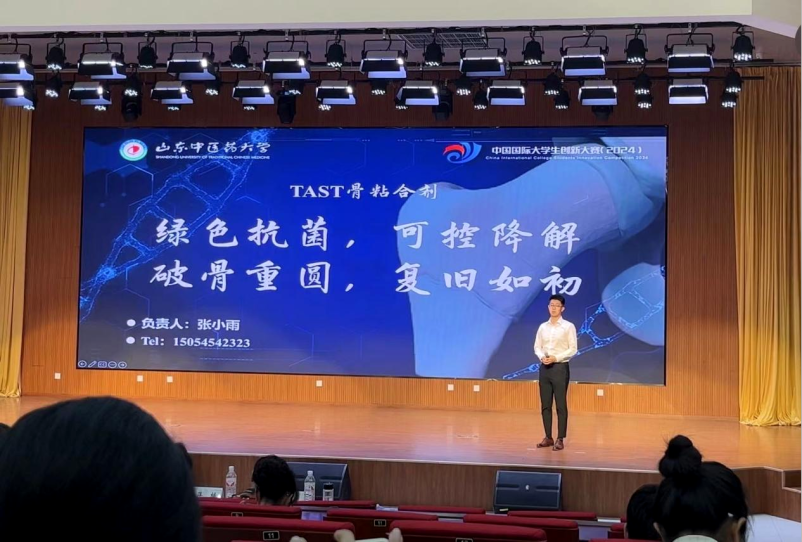 Q1:团队项目“破骨重圆一一全球首创中药小分子TAST骨粘合剂”获得“建行杯”山东省大学生创新大赛(2024)省级金奖。最初是为什么想要做这个项目?这个项目的亮点在哪里?