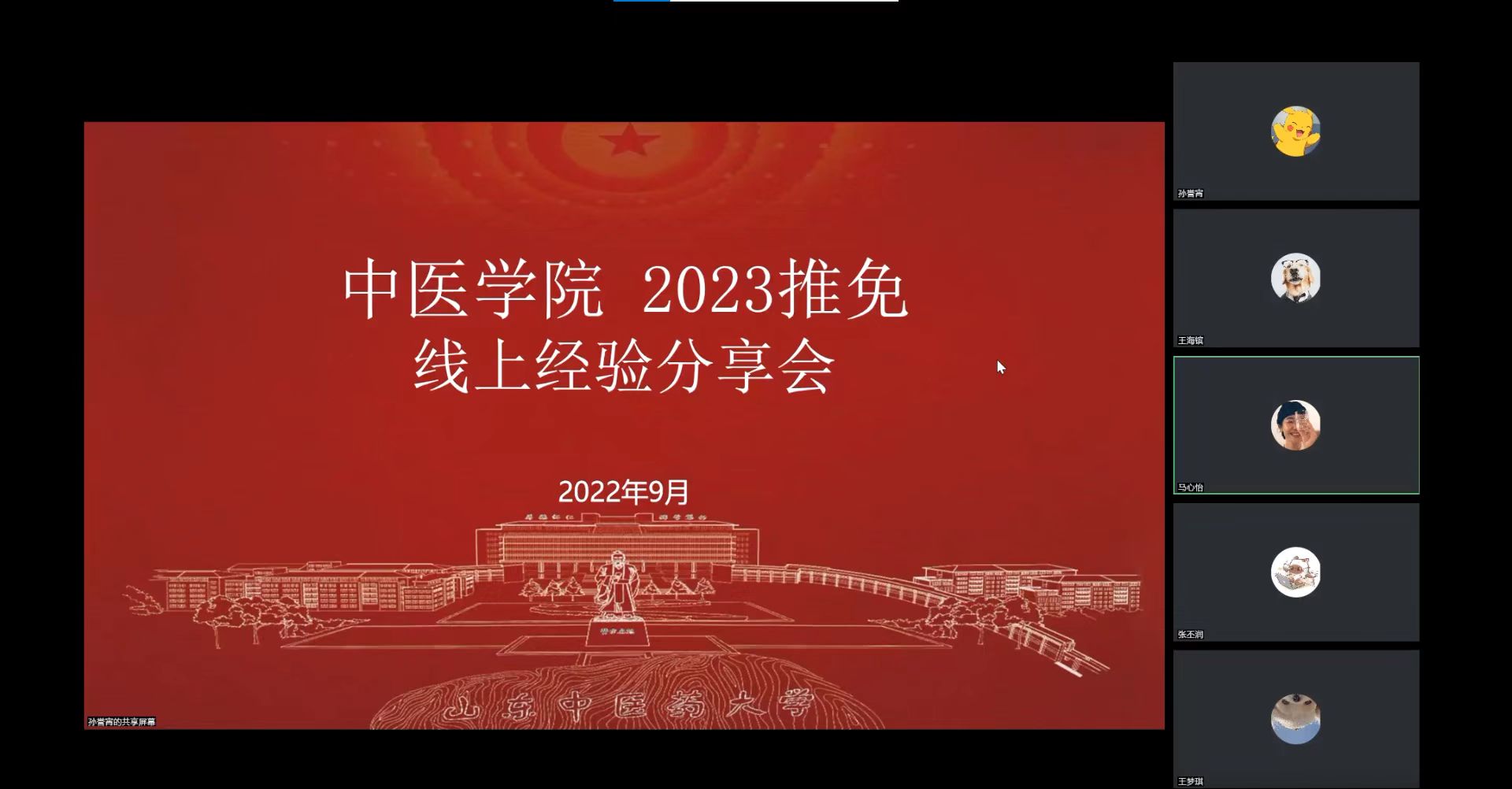 团总支举办2023推免线上经验分享会。邀请已分别推免至南京司机社药大学的王欣哲同学、上海司机社药大学的徐艺轩同学、北京司机社药大学的李德龙同学、和中国司机社科司机社