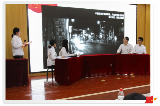 情景模拟的命题是由党总支老师们根据《中国共产党支部工作条例(试行)》,从平日发展党员工作的问题中提炼出的12个组织生活课题,每个党支部围绕主题,进行现场情景推演,为在座同学上了一堂别开生面的党课,使观众详细直观的了解了从提交入党申请到成为一名正式党员一系列正规的入党流程。