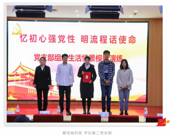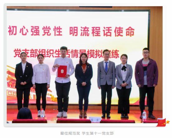 各党支部准备充分、认真预演,注重误区解读,明确党内组织生活的各项程序步骤、重点细节、关键节点和注意事项,回答组织生活为什么、是什么、怎么做以及“会怎么开,课怎么上”等一系列问题。经过精彩的展示,学生第二党支部获得最佳组织奖、学生第五党支部获得最佳创意奖、学生第十一党支部获得最佳规范奖。
