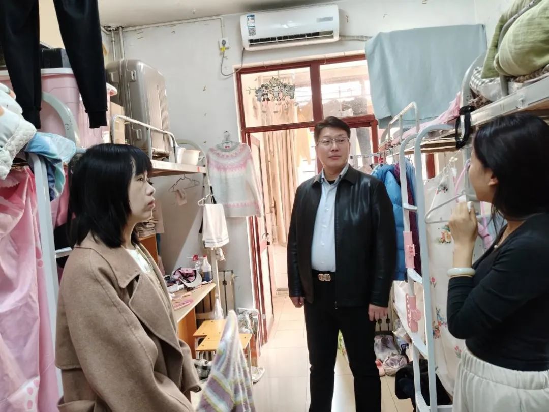 党委书记芦琳、副书记郭芳伶带领辅导员深入学生宿舍,开展防火用电安全专项检查。